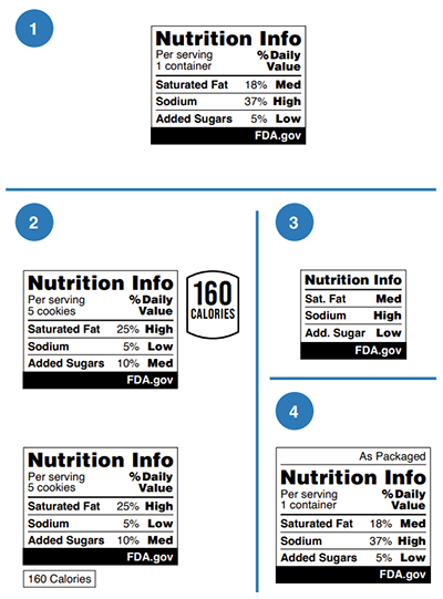 As such, the FDA has been conducting consumer research and testing several schemes: a monochrome information label, interpretive ‘Low/Medium/High’ label (with/without DVs), warning-type label (with/without DVs). Whether the scheme should focus on only including nutrients to limit (similar to warning labels in Latin America ) or those nutrients to encourage (similar to UK traffic lights ) remains an open question.
